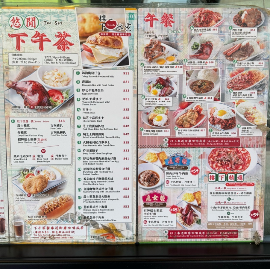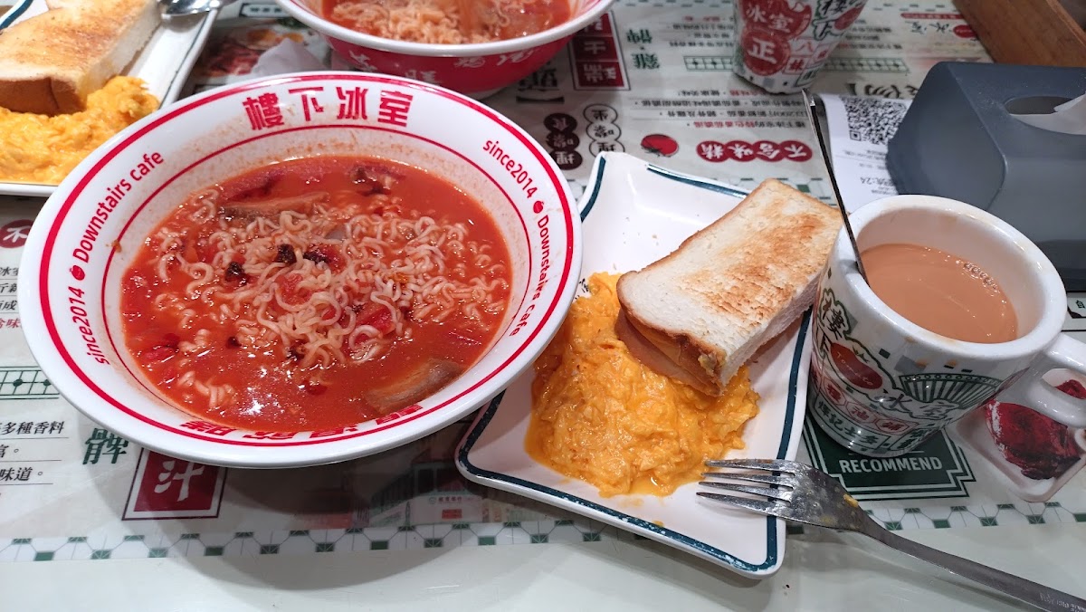 Downstairs Cafe in Quarry Bay is a typical cha chaan teng serving up familiar Hong Kong-style comfort food that fits into the daily rhythms of local life. Located on King's Road, this spot draws a steady flow of customers from morning through evening, especially those seeking straightforward, no-frills meals like ham omelettes with Danish toast or classic luncheon meat and egg sandwiches.